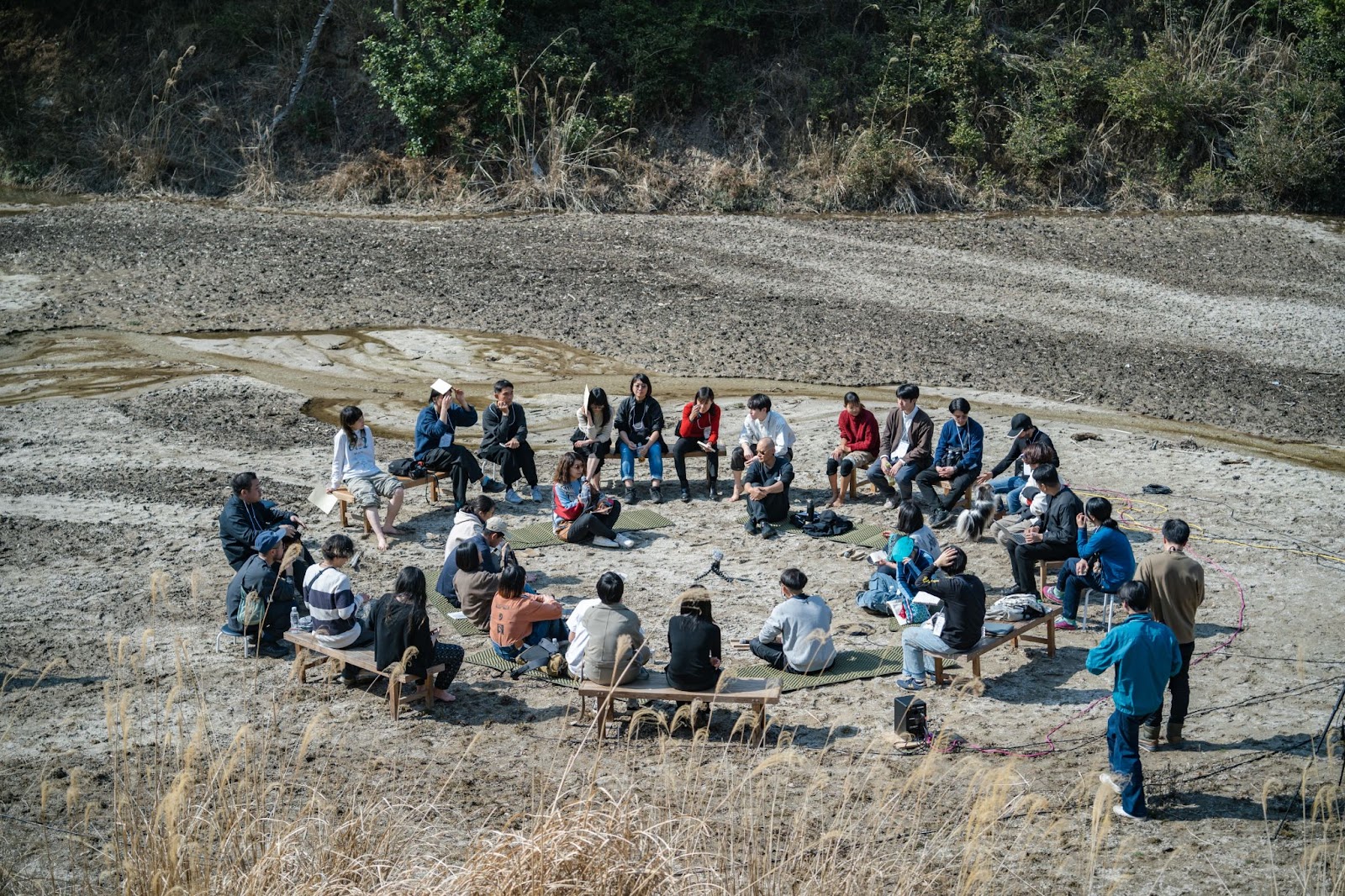 全ての参加イニシアチブのプレゼンテーションが終了し、昼食をゆっくりとった後、約500mほど歩いて砂防ダムへ移動した。砂と石が堆積した広場に、すでに技術チームと山中suplexメンバーがベンチやシートを円形にセッティングしていた。ここで、2日目にプレゼンテーションを行った4組のラウンドテーブルと、2日間全体の振り返りが行われた。まずは、2日目にプレゼンテーションを行った4組が互いに質問を投げかけた。