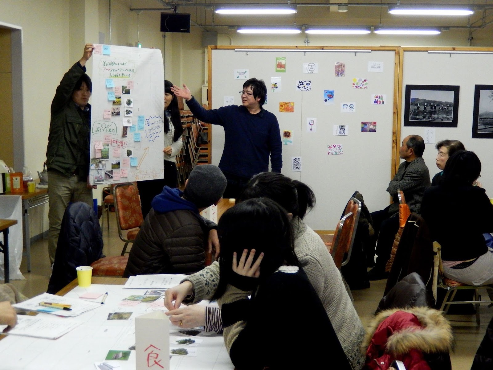 大政:「寄り合い」は美術館の開館以前、2013年から実施している美術館づくりの活動で、町民ワークショップの形式でスタートしました。「子ども」「食」「魅力発信」「ものづくり」の4班に分かれ、「美術館の設置後、どんなことをしてみたいか・どんな町になっていったら良いか」を話し合い、美術館オープニングでの成果物の披露を目指して活動しました。