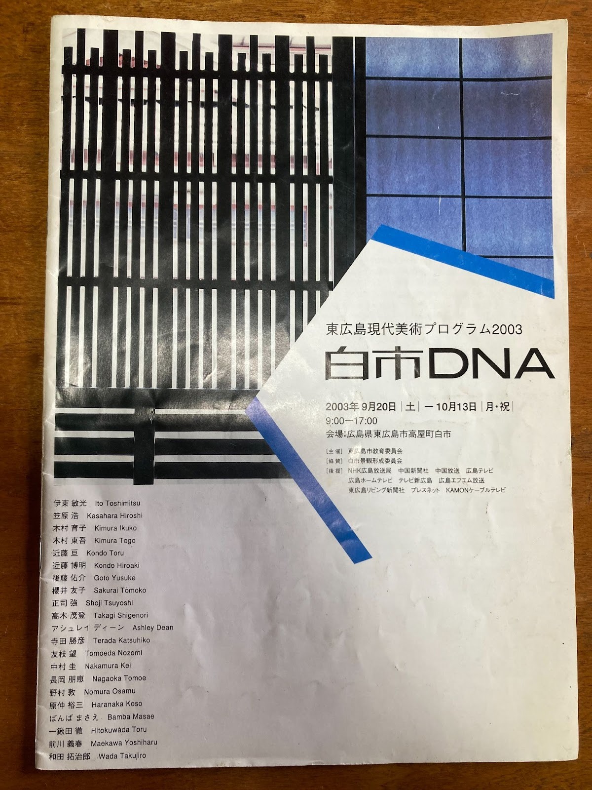 伊原(正): 僕らの活動はアートを特別な目的としているわけではないんですけれども、皆さんに来ていただくために、いくつかのアートにまつわる催しをしています。過去に東広島現代美術プログラム2003「白市DNA」という展覧会がここで開催されました。これが一つ、大きな転期といえるかもしれません。白市DNAは、僕らの前身ともいえる「景観形成委員会」が、東広島市教育委員会と協賛して2003年におこなったイベントです。